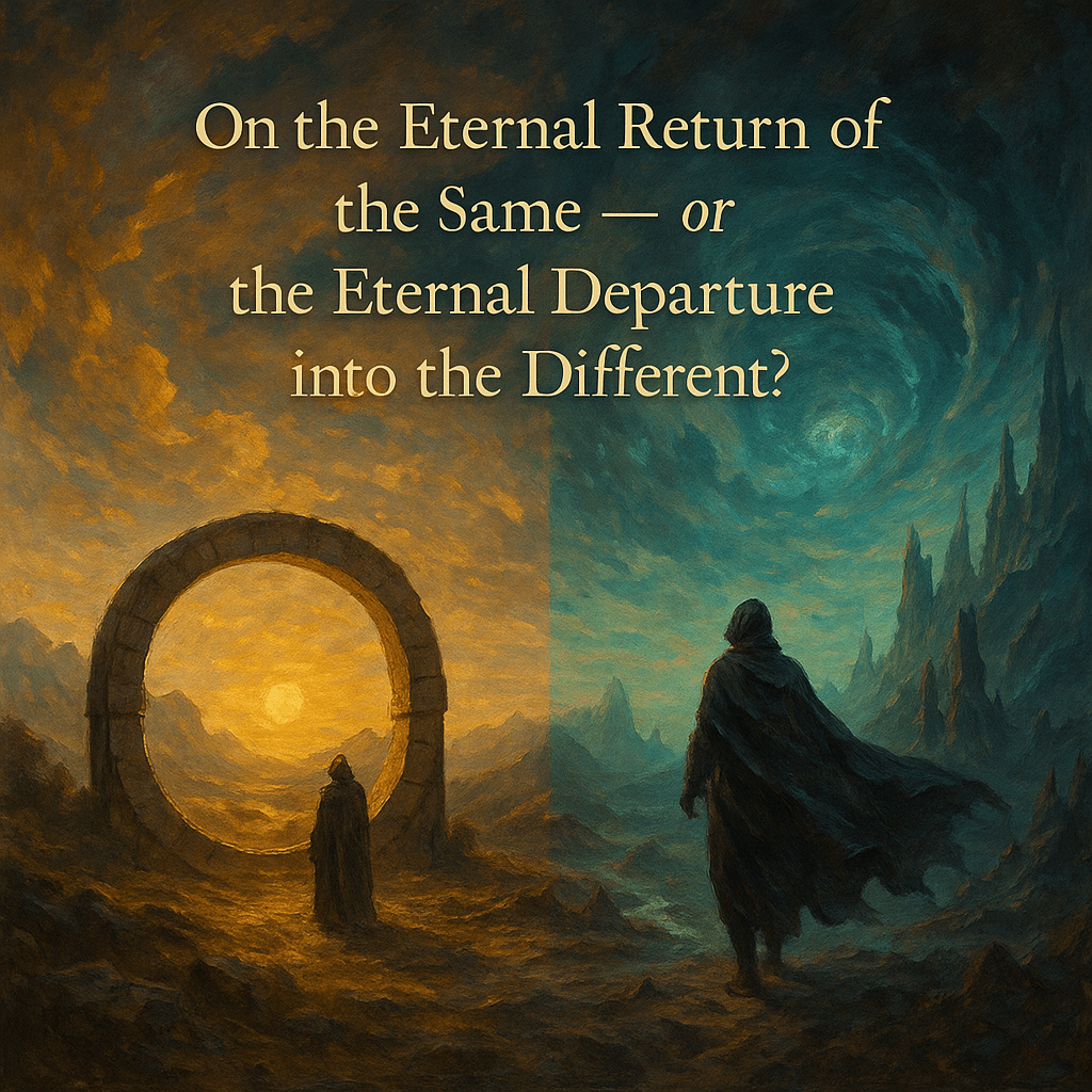 And therefore — let us boldly and cheerfully repeat the question: Is it the Eternal Return of the Same that is “at work,” or the Eternal Departure into the Different? And even if it seems difficult to find a coherent answer, and even if new questions arise unceasingly from this one..… perhaps the answer ultimately depends on which of the two we choose to entrust not only our reason and our intellect, our heart and our feelings, but — may we already say this here, in the Preface? — our “new faith” as well…
